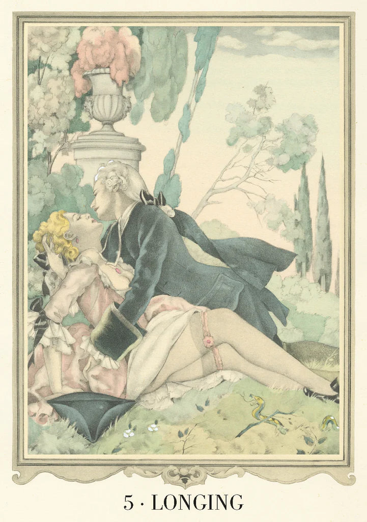Giacomo Casanova es mucho más que un simple personaje histórico: lo que representa es un arquetipo rico y multifacético, un icono cuyo nombre se ha convertido en sinónimo de amor, lujuria, aventura romántica libertinaje. Esta baraja oracular reúne un carrusel de imágenes sensuales inspiradas en la apasionante vida y en los textos de la inmortal leyenda veneciana. Creada por el famoso artista Umberto Brunelleschi en el año 1950.